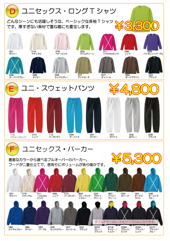 毎年販売しているオリジナルウェアですが、今年も皆様に好きな生地や色をお選び頂き、自分だけのオンリーワンウェアを作って頂こうと思います。