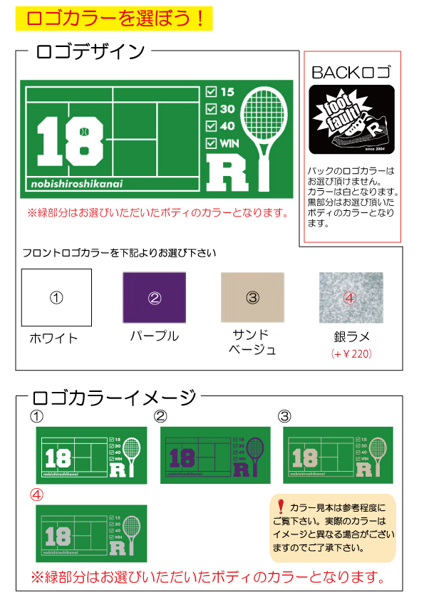ウェアの生地、ロゴの色、サイズを選びご注文下さい。