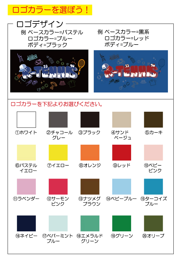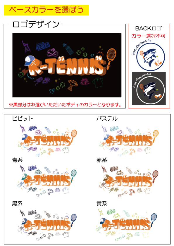 ウェアの生地、ロゴの色、サイズを選びご注文下さい。