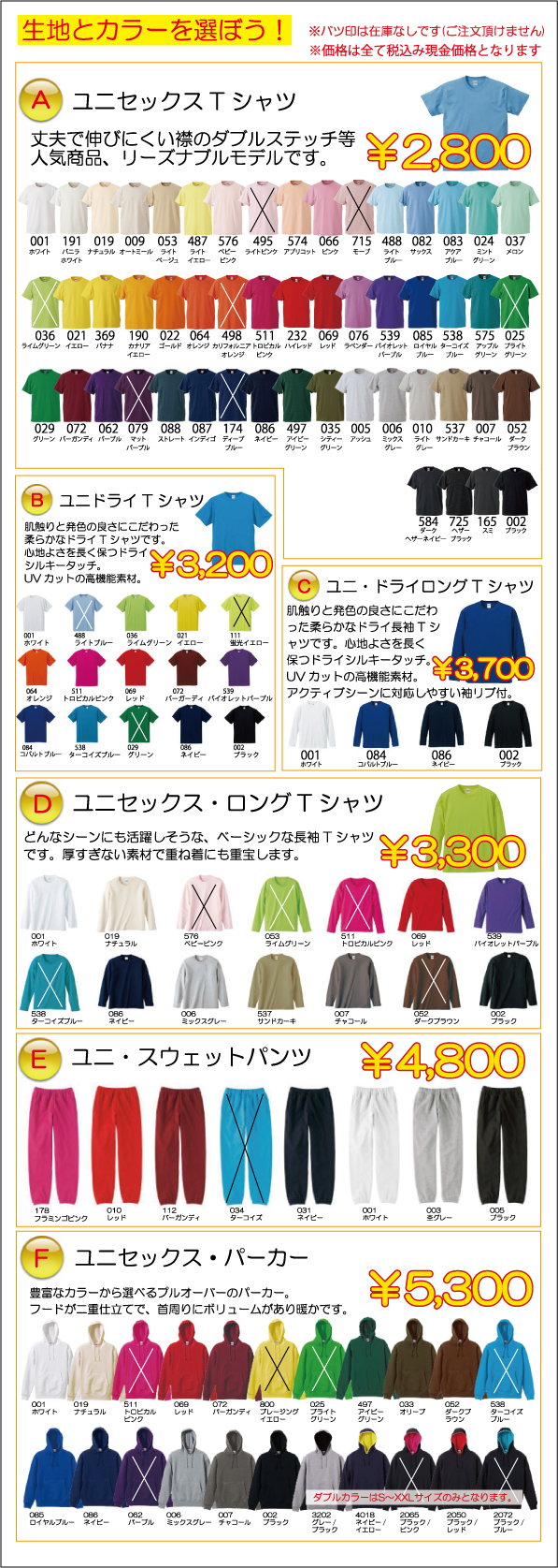 毎年販売しているオリジナルウェアですが、今年も皆様に好きな生地や色をお選び頂き、自分だけのオンリーワンウェアを作って頂こうと思います。